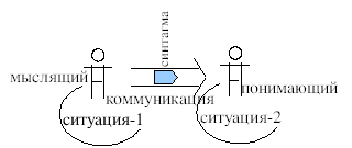 Ее можно понять как конкретизацию схемы «языкового мышления» путем замены «неспецифичной для мышления» связи значения на двойную связь замещения объективного содержания знаковой формой и отнесения последней к содержанию32. Трансформируются и оба других элемента схемы.